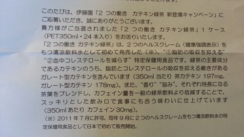 伊藤園さま、キャンペーン参加ありがとうございます(^///^)伊藤園 「2つの働き カテキン緑茶 新登場キャンペーン」太っ腹な1ケース頂きました紹介文より 大きさにニヤケちゃう 配達員さんもニヤけた私にビビったかも 早速、昼ごはんと一緒に。 最初は苦味が…